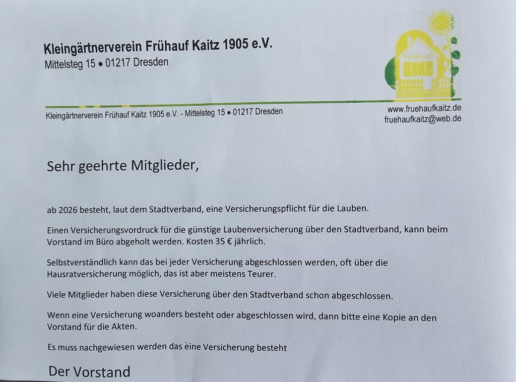 - 17. April: 17.00 Uhr Mitgliederversammlung